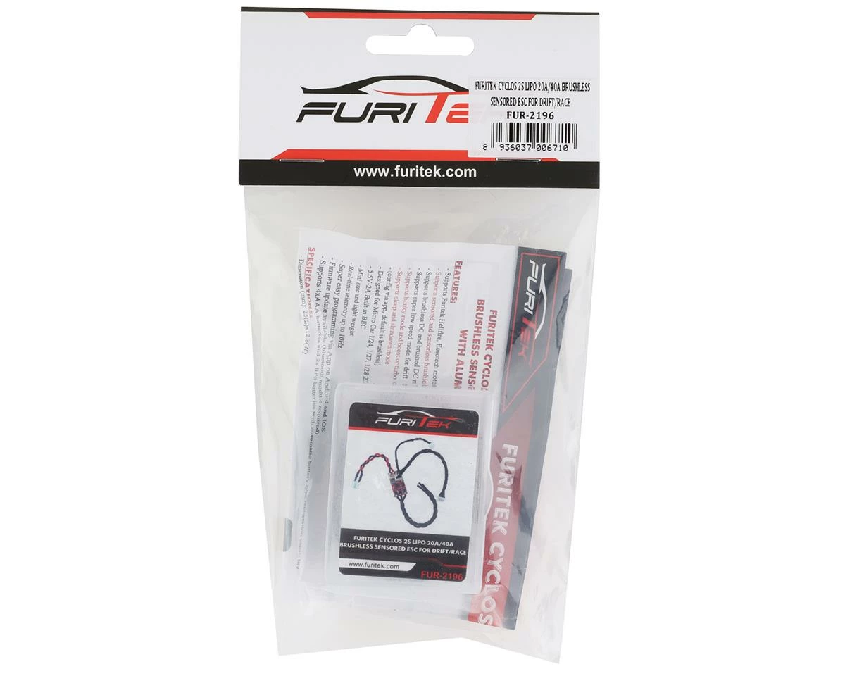 This is the Furitek Cyclos 20A Sensored Brushless ESC. The Cyclos is an extremely flexible ESC capable of handling both brushed and brushless sensored motors. Designed to handle Furitek Hellfire sensored motors this ESC provides the ultimate in smooth power delivery you expect in a high end race oriented ESC. Overall the Cyclos provides stable and powerful torque, low noise, high efficiency, and offers high-speed dynamic response. For users looking for telemetry, the Cyclos has you covered. When paired with the bluetooth module (or purchased together as a combo), users can see telemetry data on both Apple and Android devices via the FuriCar app.Â