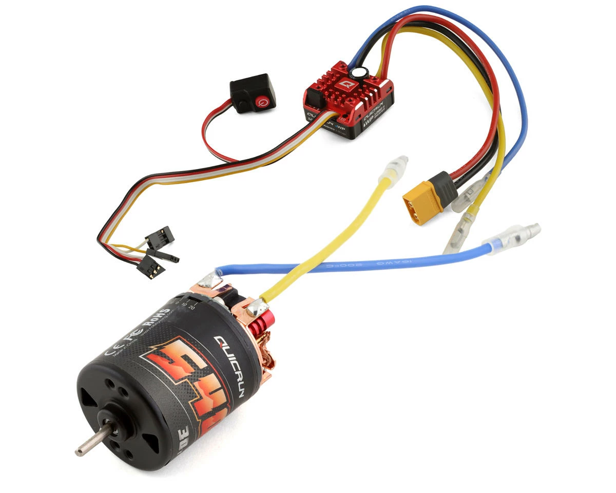 The Hobbywing QuicRun Waterproof 1080 G2 Brushed Crawling ESC is designed to bring top levels of performance to the Crawler ESC category. This ESC is extremely compact and features many updates! The most impressive is the “Real Car Mode”. Using an idle channel on your transmitter allows you to pull the throttle and switch between forward or reverse with pushing the throttle applying brake. This will bring an added level of realism to your RC adventure. This epic combo includes the Hobbywing QuicRun 540 Brushed Motor for out of the box performance and efficiency.