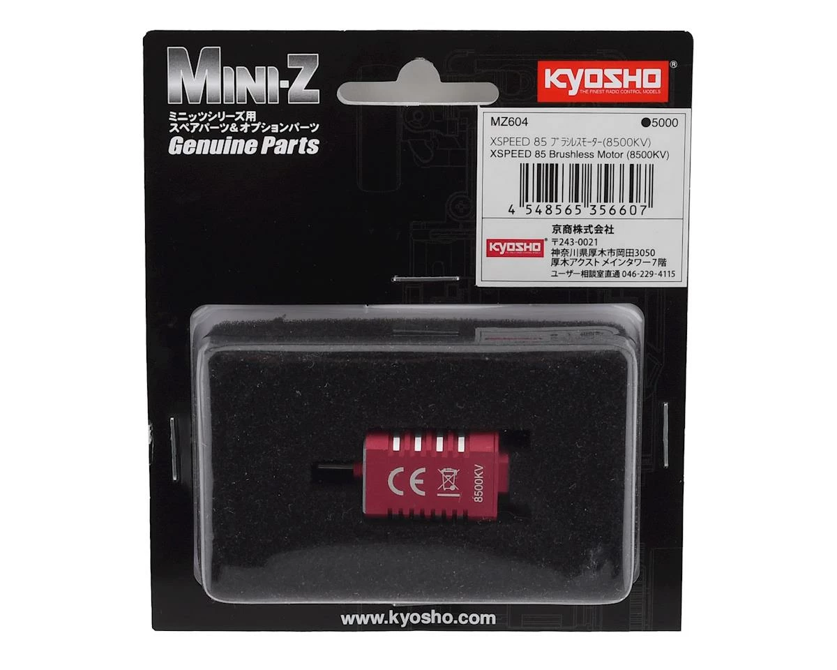 Kyosho MINI-Z XSpeed 85 Brushless Motor. Package includes one 8500kv brushless motor with factory installed bullet connectors.Â
