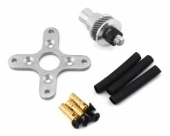 All Scorpion HK Series 22mm motors come with 3.5mm male Bullet style connectors already attached, and include a hardware package that contains 3 matching female Bullet connectors for your speed controller and a cross style backplate mount with 4 screws. Since the HK series motors are primarily designed for Helicopter and Ducted Fan use, they do not include a prop adapter. If you intend on running a prop on this motor, you will need to purchase a prop adapter for a 3.175mm shaft (1/8 inch).