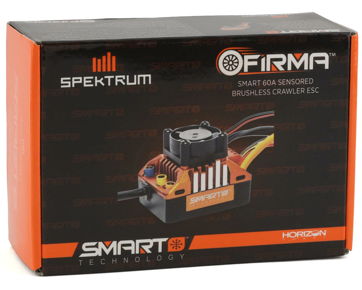 The Spektrum RC Firma 60A Sensored Brushless Smart Crawler ESC is specifically engineered to be used with 10th scale Crawlers and Scalers. Featuring advanced Smart connectivity, professional Drag Brake Performance and torque control, all while being fully waterproof.