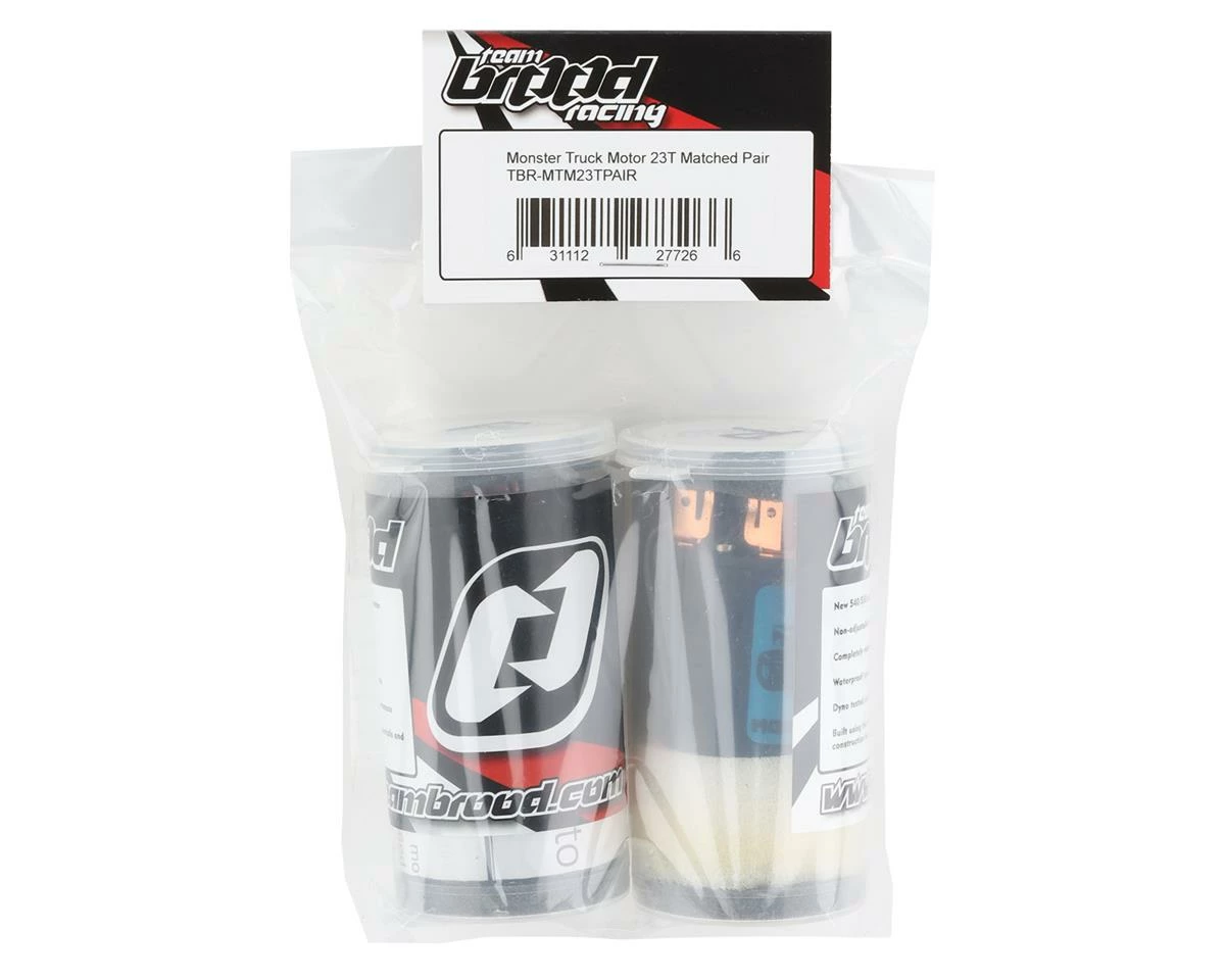 The Team Brood Monster Truck Machine Wound 540 Clod Buster Motor Set was developed for spec Clod Buster racing. These motors are setup as a matched pair, marked with forward and reverse position and tuned to run in sync. The motors are broken in in the correct rotation, set to 0 degrees timing, and are ready to rip right out of the box. Grab a pair and take advantage of the tricks and tweaks that only a veteran motor builder can offer!